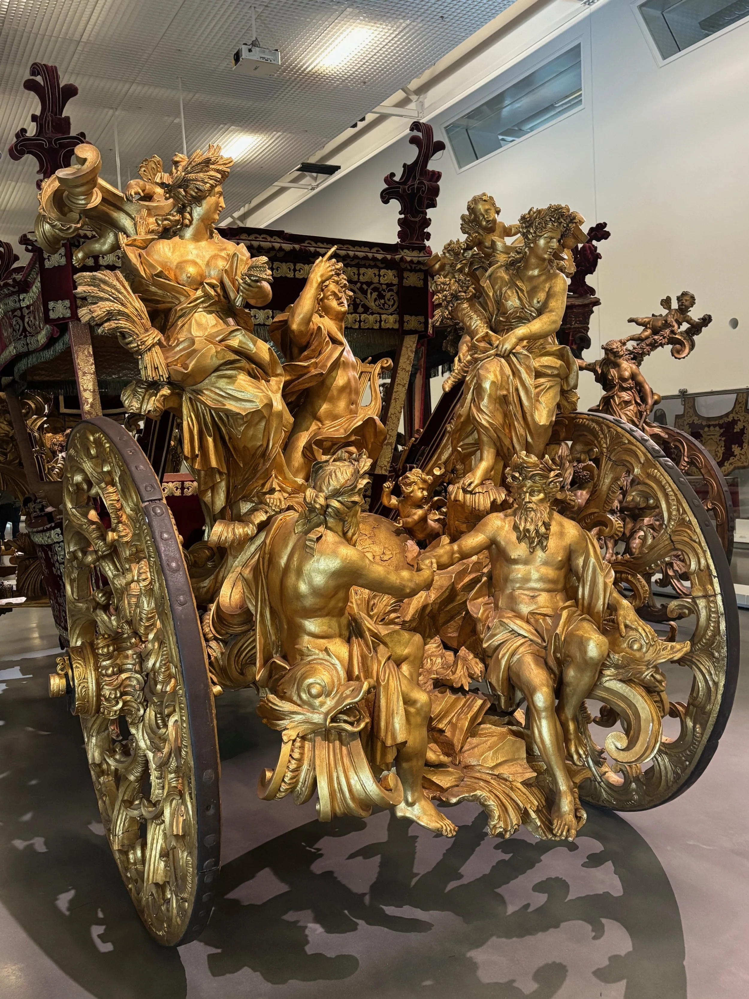 Perhaps a trifle gaudy. That's the back end of a royal carriage, in Lisbon's Carriage Museum.